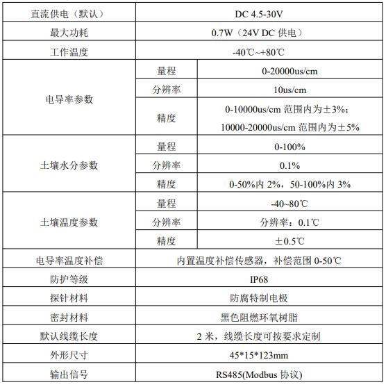 1)土壤含水率、電導(dǎo)率以及溫度三參數(shù)合一。