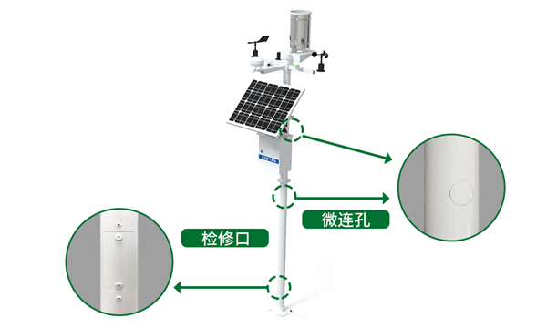 建大仁科氣象站桿體:建大仁科經(jīng)過精密計(jì)算,摒棄傳統(tǒng)供電方式,立桿上設(shè)有微連孔,防水對(duì)插線均走桿體內(nèi)。微連孔若不使用則與桿為一個(gè)整體,外觀美觀,防護(hù)性能好;使用時(shí),線槽用小錘輕輕敲掉,即能完成走線。